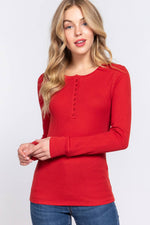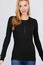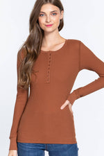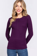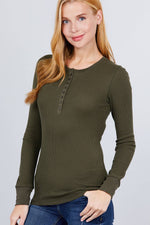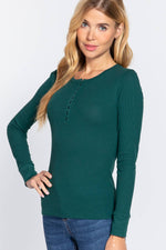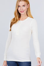 Fitted Long Sleeve Henley Thermal Knit Top