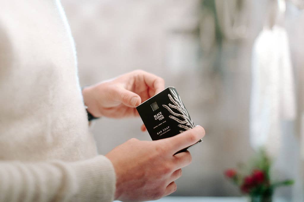 Keywords: men’s bar soap, black coral tide, natural bar soap, exfoliating bar soap, black sand soap, artisan soap, marine fragrance, amber musk, men’s skincare, rugged soap, smoky fresh soap, men’s grooming, everyday essentials, moisturizing soap, full body soap, clean men’s soap, sustainable soap, luxury bar soap, handmade soap, Father’s Day gift, Valentine’s Day gift, Christmas stocking stuffer, holiday gift guide, birthday gift for him, Broken