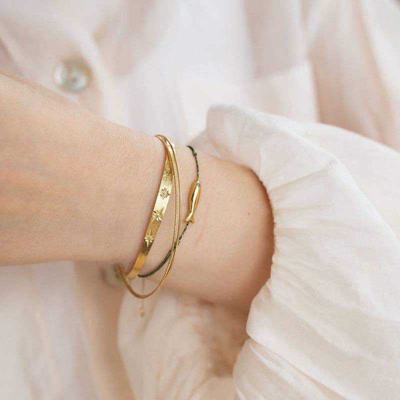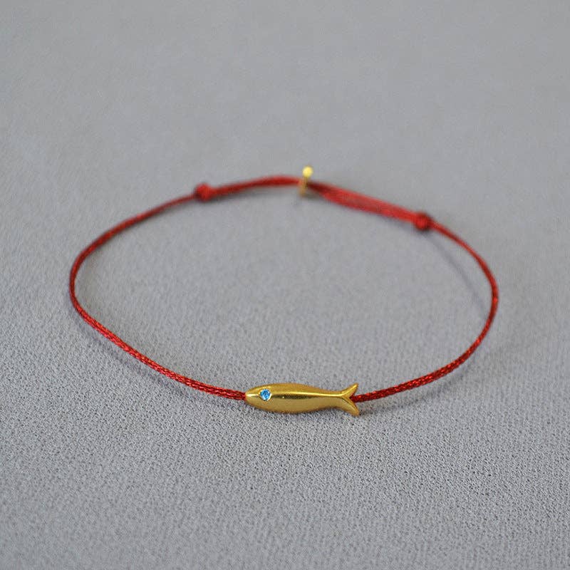 • Material: High Quality Gold Plating copper fish with Cubic Zirconia stone and aqua nylon braided rope