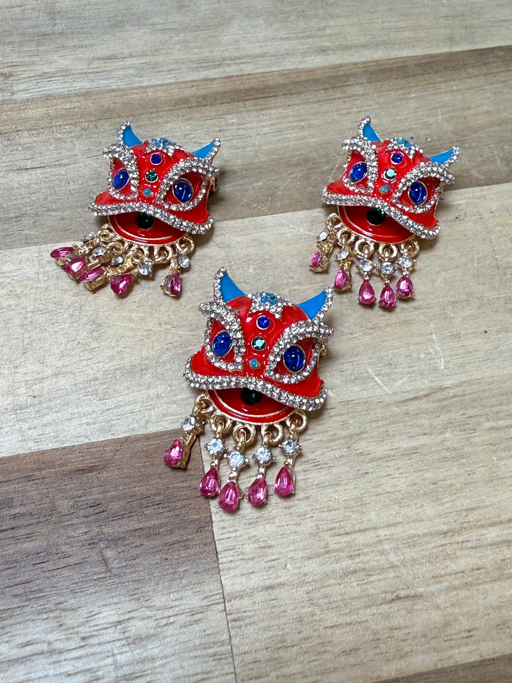 Roar into style with this dazzling Asian Lions brooch pin! Featuring shimmering rhinestones that catch the light from every angle, this classy accessory transforms any outfit into a statement piece. Perfect for lapels, scarves, hats, or bags, it brings a touch of majestic flair to your everyday look. Whether you're dressing up for a special occasion or adding sparkle to casual wear, this decorative pin celebrates bold, playful elegance. A conversation starter that proves accessories don't have to be boring—let your wild side shine! Measures 1.85".