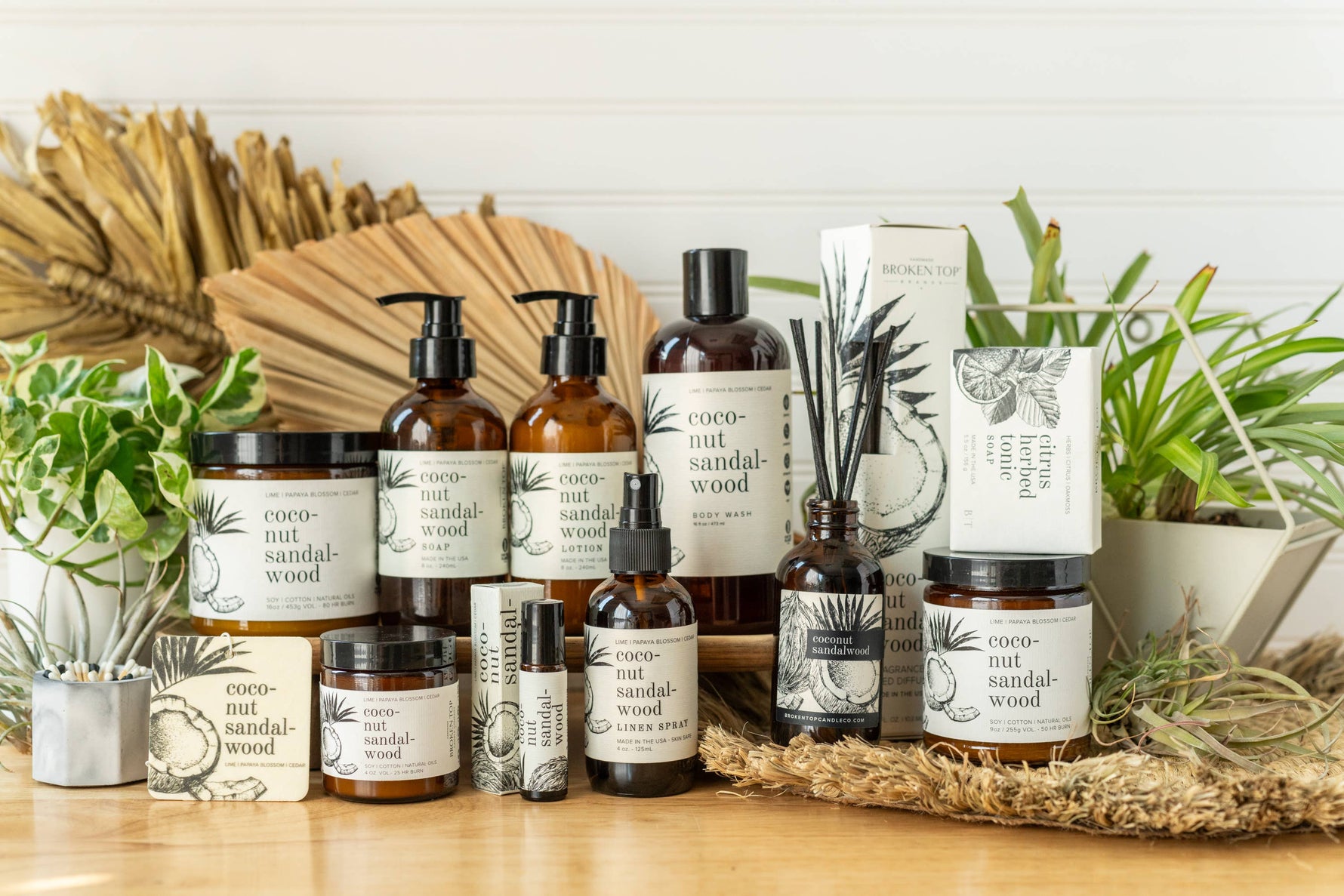 Transport yourself to a tropical hideaway with Coconut Sandalwood. Zesty lime and lush papaya blossom mingle with creamy coconut and warm sandalwood, creating a fragrance that’s equal parts sunlit beach day and cozy sunset retreat. This reed diffuser delivers long-lasting, effortless fragrance that feels like vacation—no passport required. Features: Flameless, eco-friendly, and low-maintenance, this reed diffuser provides a continuous tropical aroma perfect for living rooms, bedrooms, and entryways. Keywords: Coconut sandalwood reed diffuser, tropical diffuser, lime papaya blossom fragrance, eco-friendly reed diffuser, natural home fragrance, artisan diffuser, sandalwood diffuser, coconut home fragrance, long-lasting reed diffuser, island-inspired diffuser, tropical home essentials, relaxing home fragrance, coconut lime diffuser, papaya blossom diffuser, cedarwood home fragrance, Broken Top reed diffuser, vegan reed diffuser, paraben-free home fragrance, luxury reed diffuser, cozy home diffuser, fresh tropi