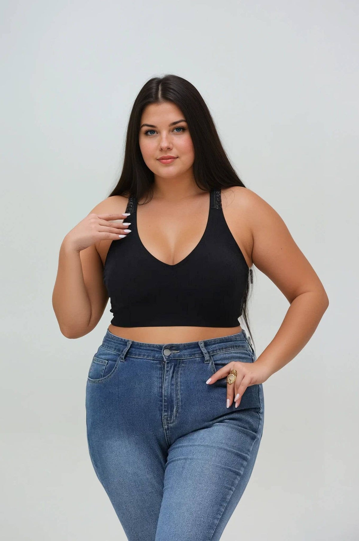 Meet our Curvy Bralette – the seamless front lace racerback that’s turning heads in extended sizes! Crafted from a comfy mix of 92% Nylon and 8% Spandex, it hugs sizes 14-18 with busts 40"-44" like a dream. The delicate lace front and sporty racerback add flirty style without sacrificing comfort or movement. Available in 1X/2X, perfect for anyone who loves chic, easy-to-wear lingerie.