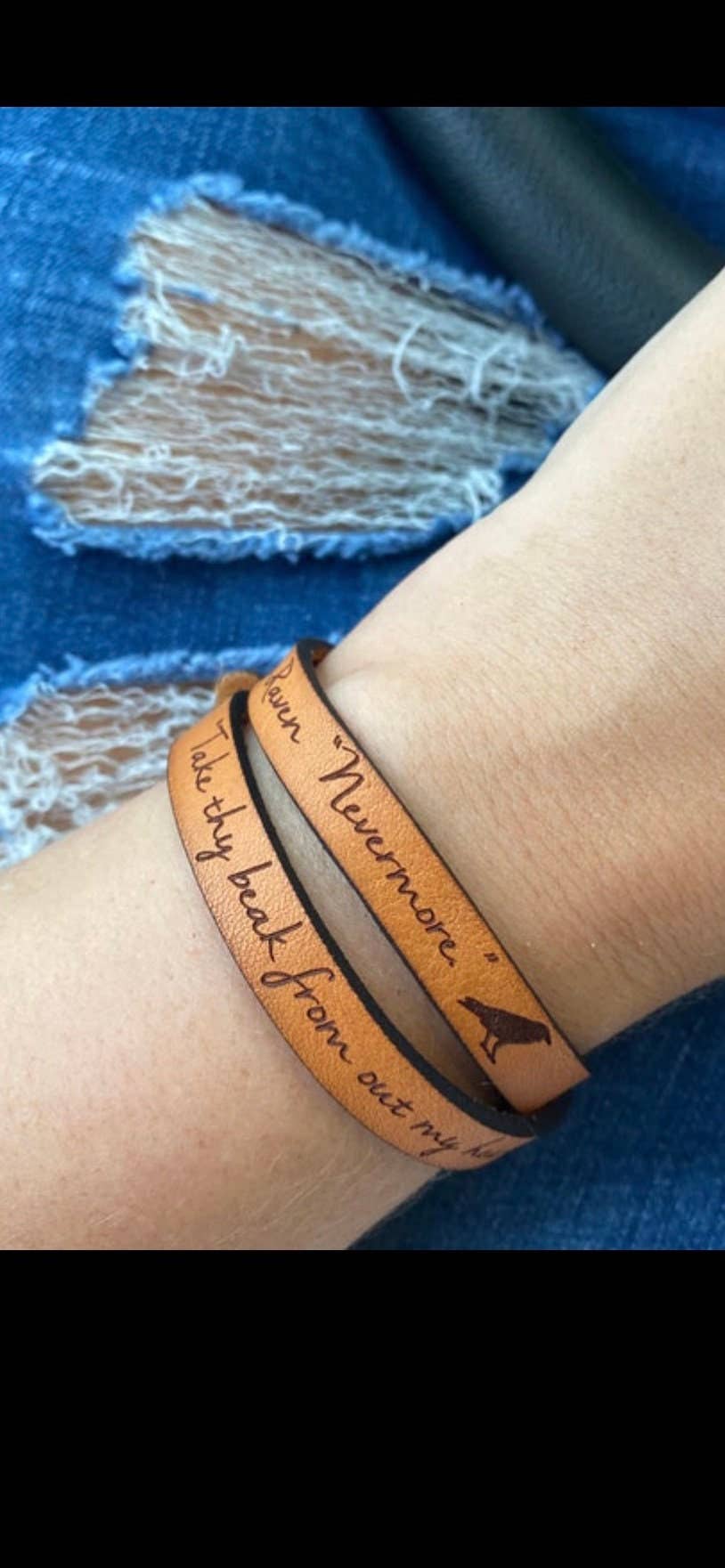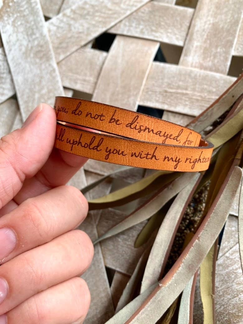the bracelet is made from full grain leather from our local leather shop. We personally cut and assemble each bracelet. The leather is comfortable and lightweight, making it great for everyday wear.