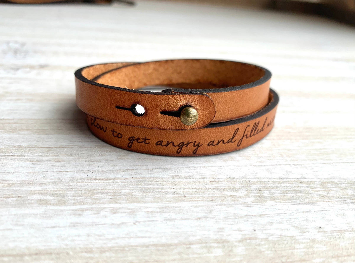Double Wrap Leather Bracelet - Adjustable Stud Cuff - Custom