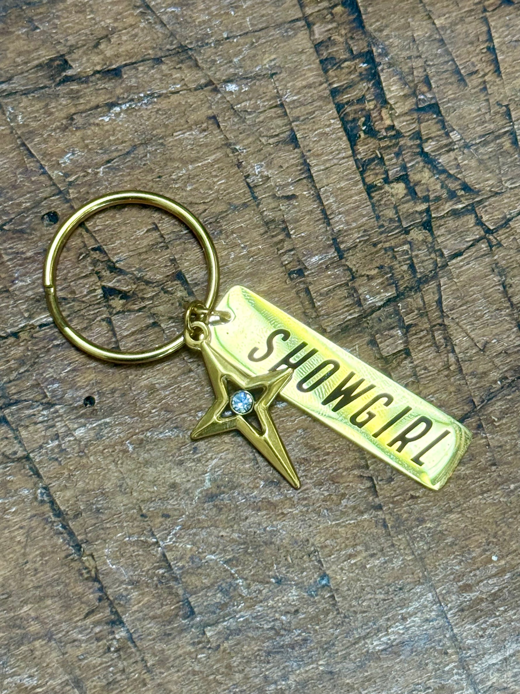 Engraved Stainless Keychain | Showgirl with CZ Star Charm