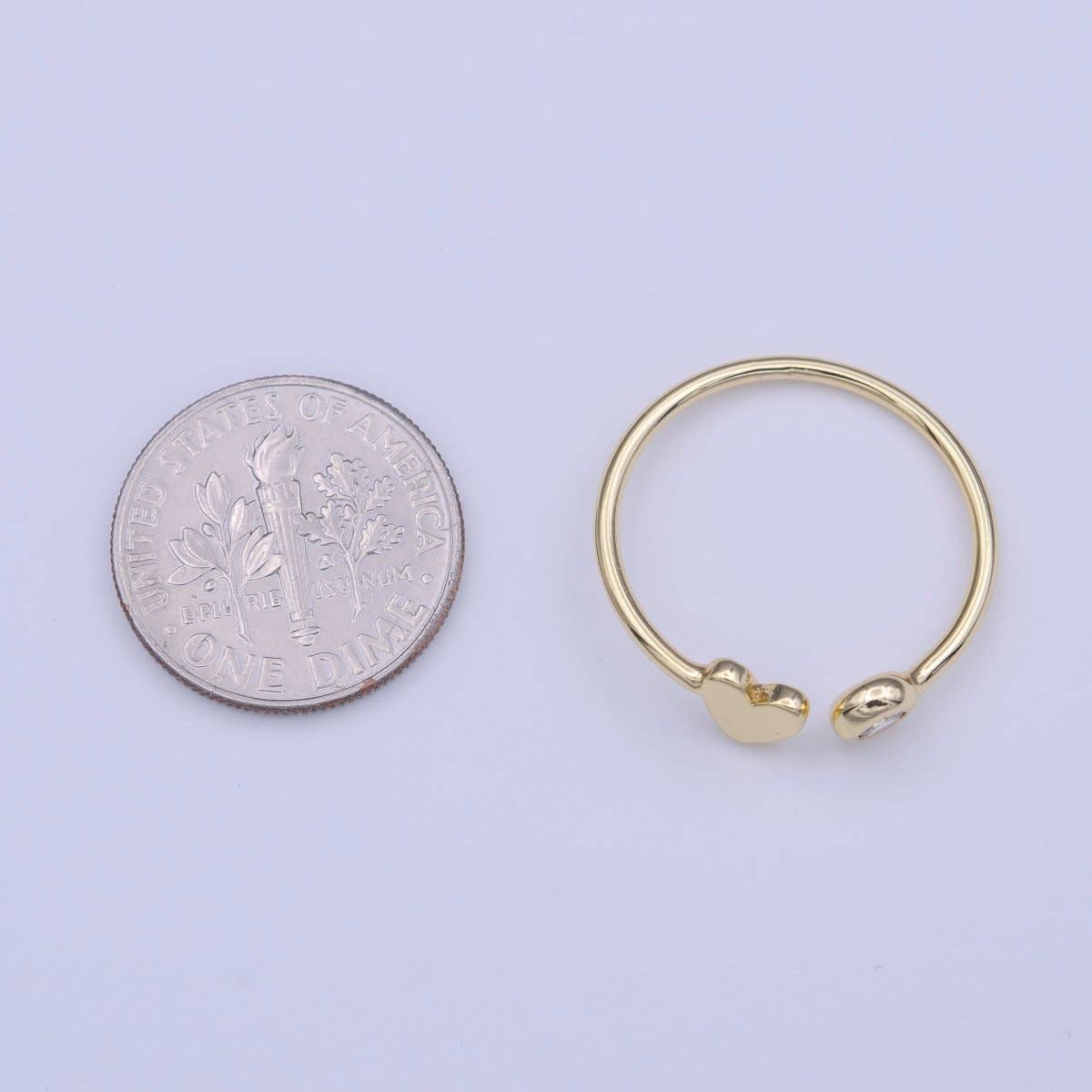 Gold Filled Minimalist Heart Round Cubic Zirconia Open Adjustable Ring | O-124