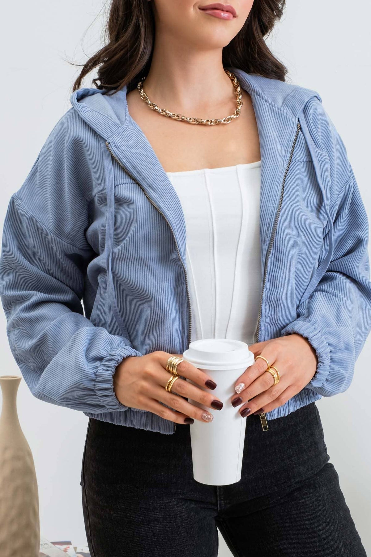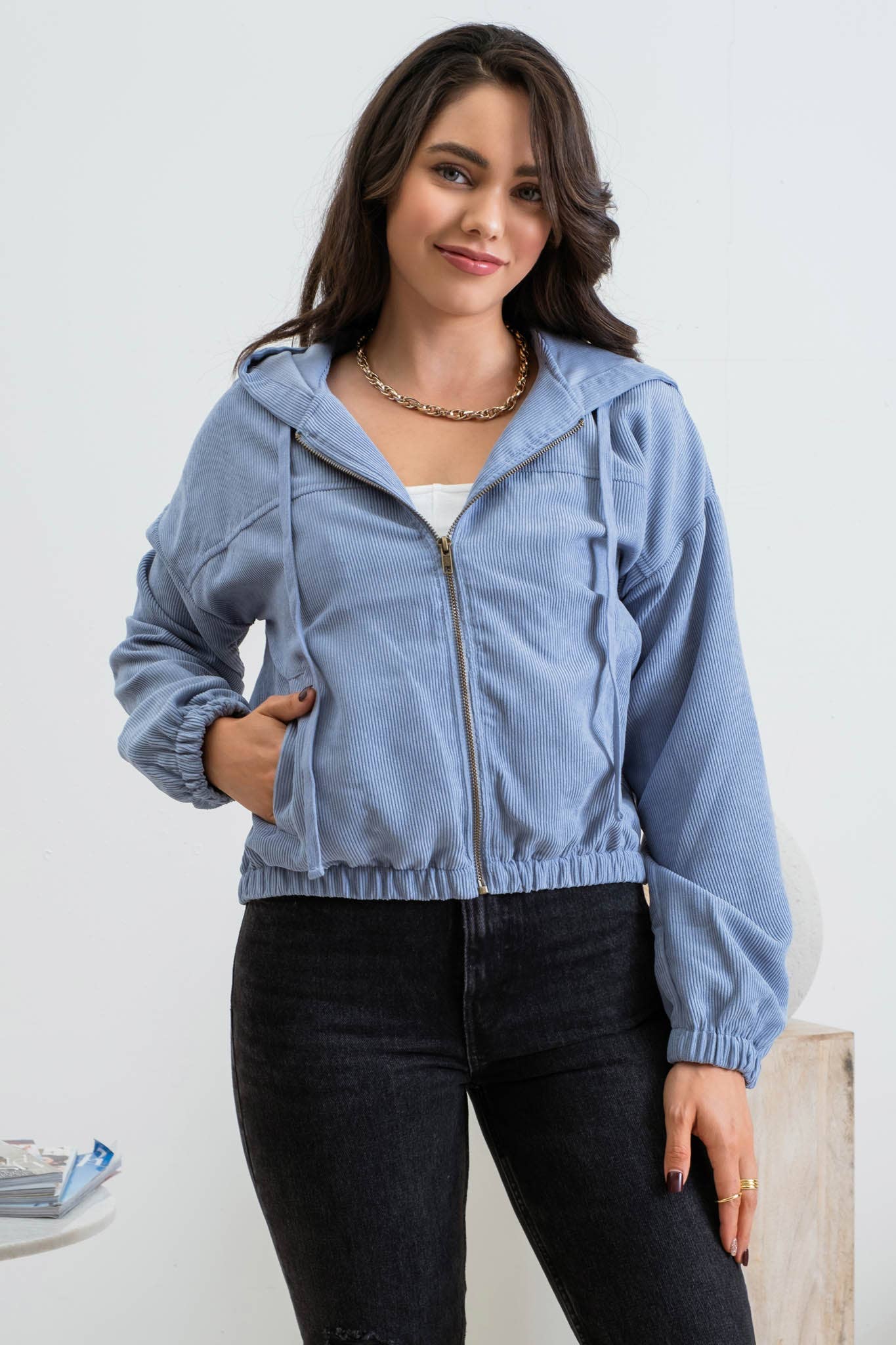 ZIPPER FRONT CLOSURE - LONG SLEEVES WITH ELASTIC OPENING - ELASTIC WAIST - SELF HOOD - FRONT TIE - SIDE POCKETS - SHELL: 100% POLYESTER