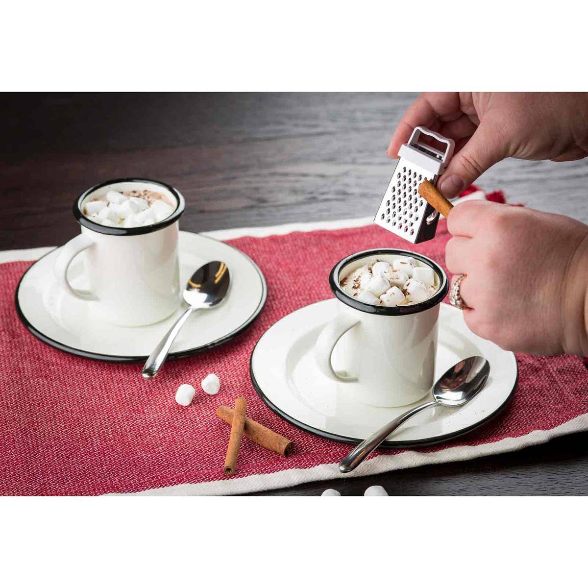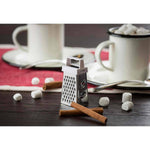 This mini 4-sided tapered grater is perfect for a wide variety of tasks, from shredding cinnamon, nutmeg and other small spices to grating bits of cheese! Features a small white handle for easy hold while in use. Each side features a different type of grater for versatility.  Dishwasher safe.