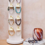 Faceted semi precious gemstones align as little luxuries on this stunner. Elevate any stack and create looks with unique intentions. Each bracelet includes a mini charm with the Scout logo on the reverse side.