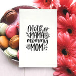This 'Mother Mama Mommy Mom' tea towel is a low maintenance tea towel for high maintenance messes.