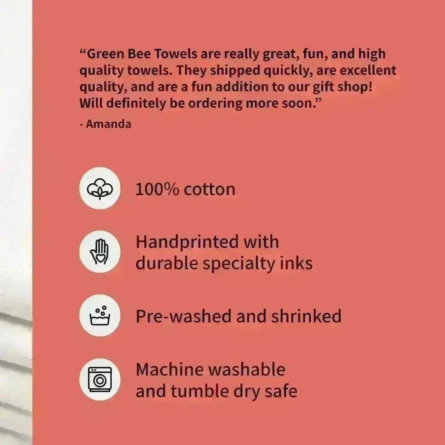 Green Bee Tea Towels was founded by Rena in 2015 to provide products that are not only fun and beautiful but that are also functional and durable.