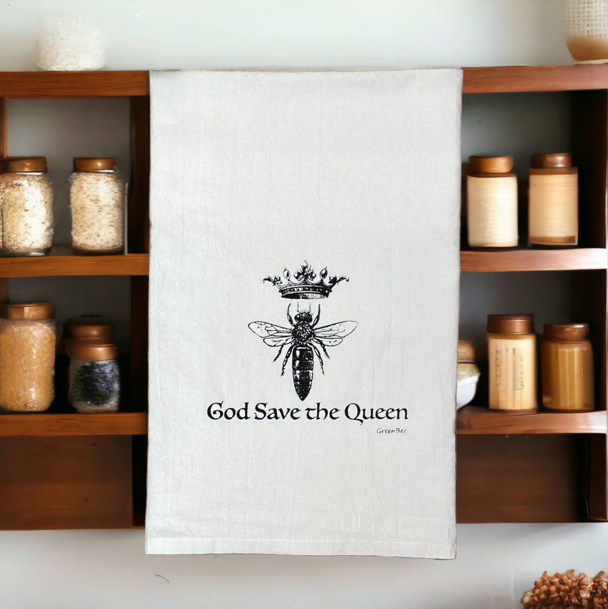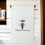 This 'God Save The Queen Bee' tea towel is a low maintenance tea towel for high maintenance messes.