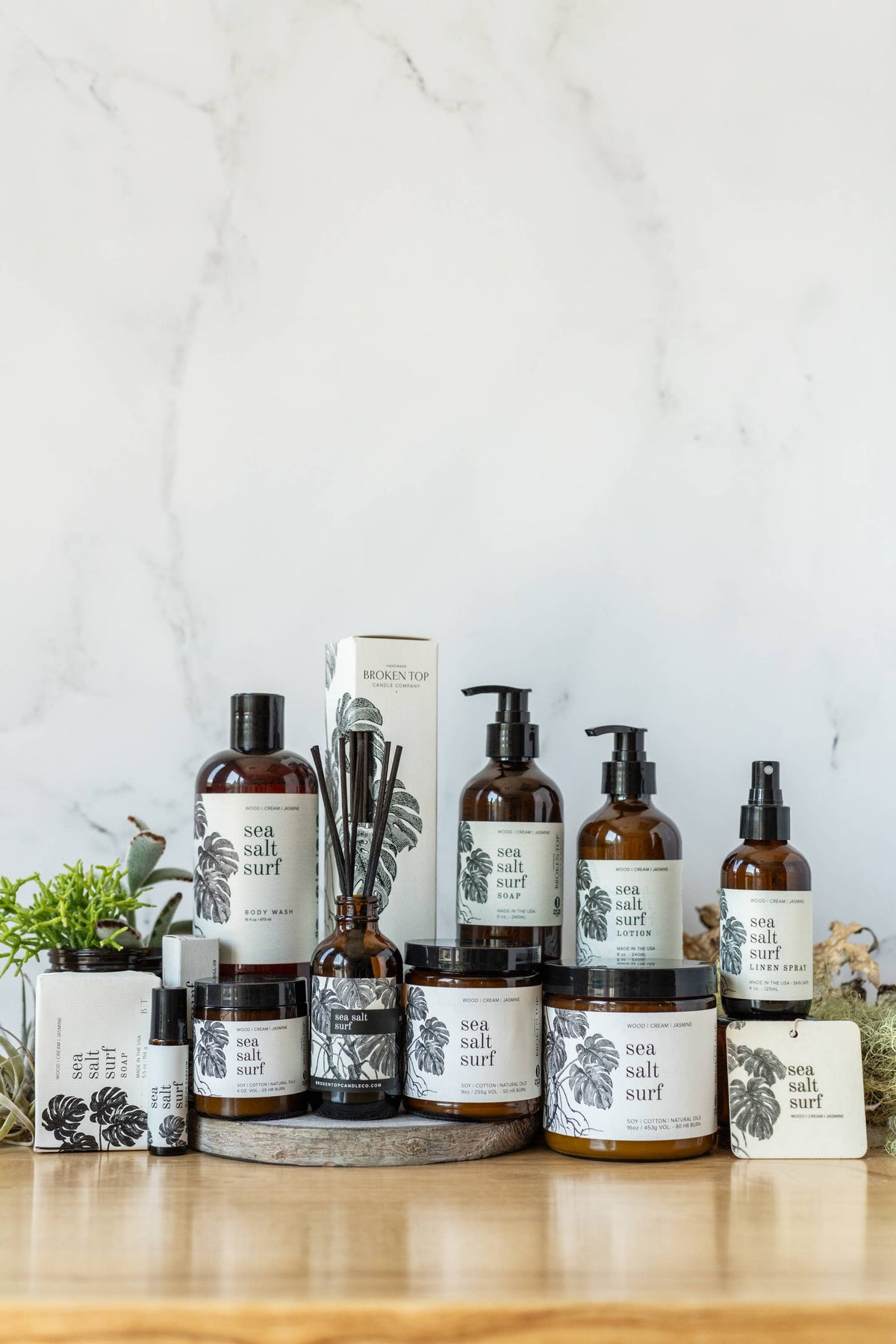 Bring the ocean breeze to your skin with Sea Salt Surf—a refreshing, airy blend of wood, creamy vanilla, and delicate jasmine. Like a barefoot walk along the shoreline, this scent is both grounding and uplifting, capturing the essence of rolling waves and sun-warmed sand. Smooth, salty, and just a little sultry, it’s the perfect everyday escape bottled up in lotion form.